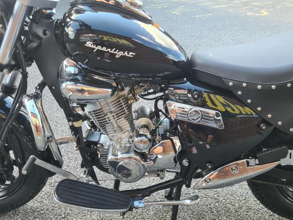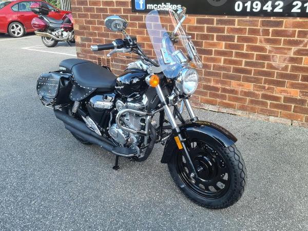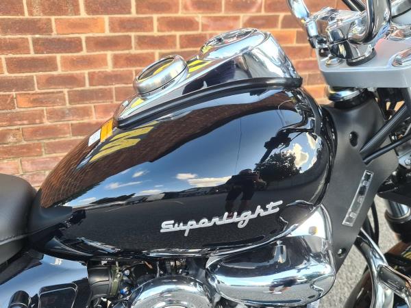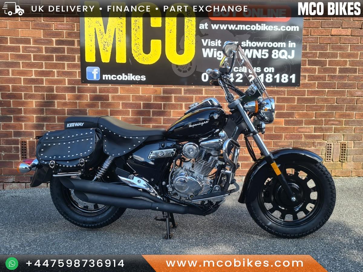 Keeway Superlight SE 125 Was £2,849 Now £2,499 Save £350. The most complete small cruiser available today brings forth the essence of primal motorcycling from decades past. If ever a reason to want an open road and carefree day to waste, this is it, this is your ride. In an age of plastic and speed sometimes all you want is to have is time, a traditional motorcycle that doesn’t get in the way of enjoying a day in the saddle, reliability is what underpins each and every mile. efficient fuel injection married to the Dual Counter balanced engine makes every road a place where time becomes irrelevant and pleasure becomes your purpose, fitted with Leather Saddlebags, with a custom windshield protective engine bar as standard, the deep Gloss Black finish with Chrome recalls the exploration of the highway and the ever changing horizon. Starting out or returning to 2 wheels it can be every bike you need or just the one you really want. Nationwide delivery available. Nationwide delivery and finance available. Buy online at www.mcobikes.com or call our sales team on 01942 218181 or WhatsApp 07598736914.