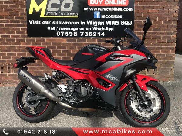 Kawasaki Ninja 500 SE Performance edition. EX DISPLAY. Saving £700 on MSRP. K-Options 0% apr finance available. PERFORMANCE EDITION (akrapovic exhaust tint screen, seat cowl, tank pad) Make Your Statement with the new Ninja 500 sports bike. Turn heads with the aggressive styling Ninja sports bikes are known for and set the tone with a 451cc twin-cylinder engine. Experience legendary Ninja performance on the sports bike designed to lead the crowd. Liquid-cooled, 4-stroke Parallel Twin. . Nationwide delivery and K-Options finance available. Buy online at www.mcobikes.com or call our sales team on 01942 218181 or WhatsApp 07598736914.
