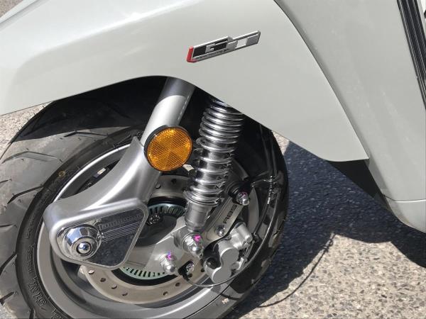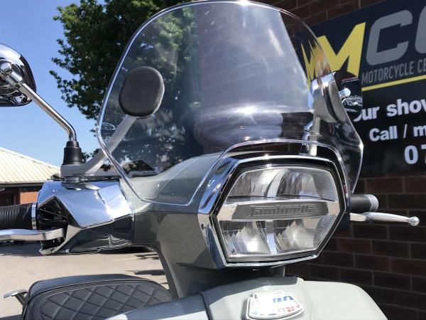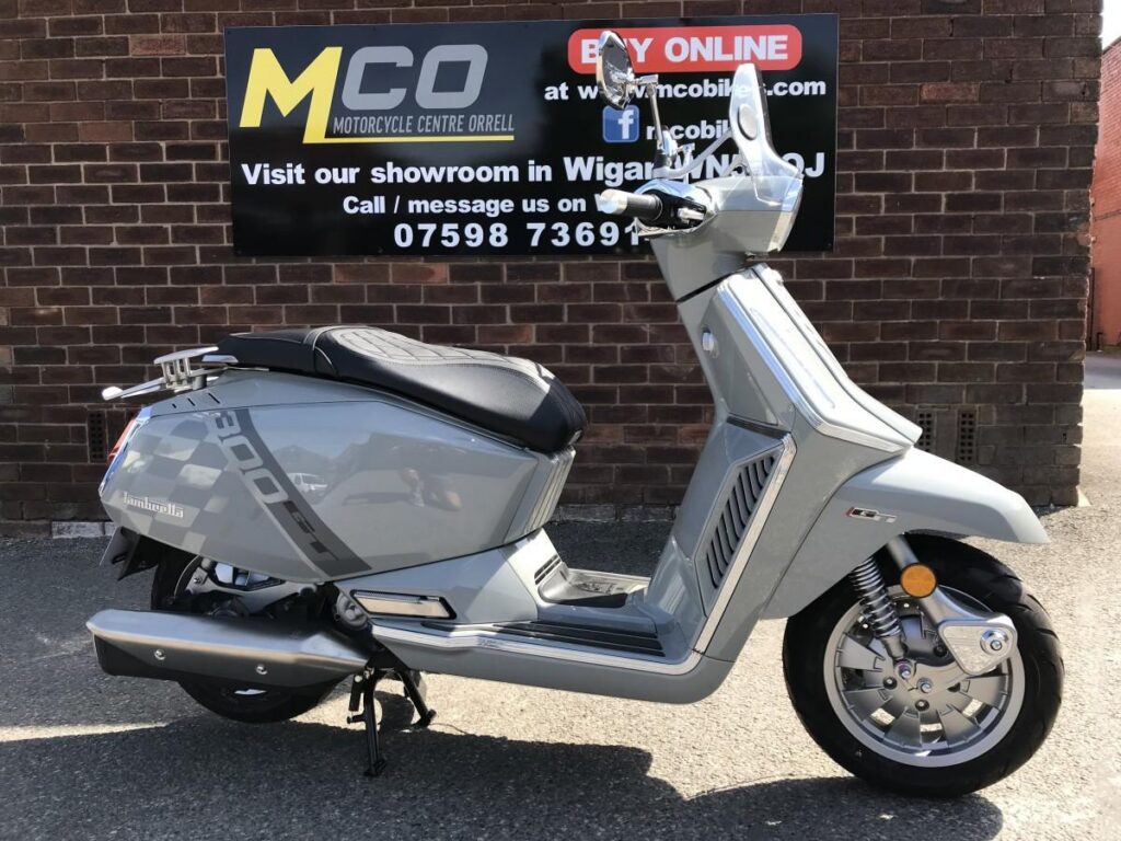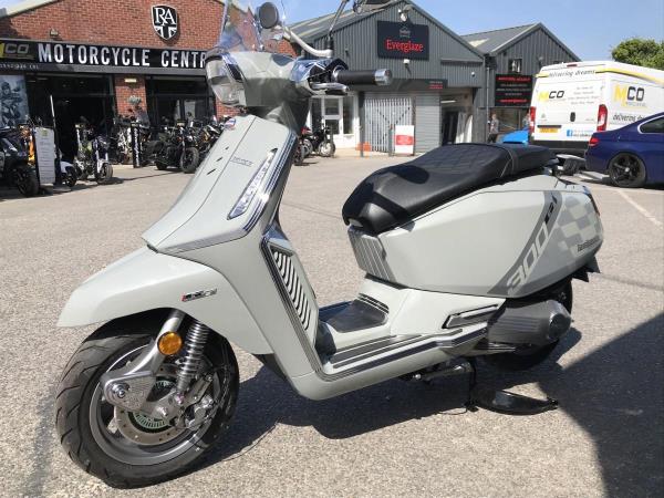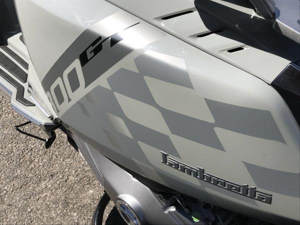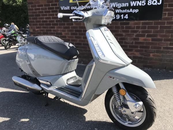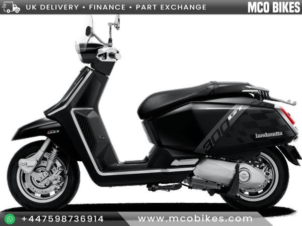 Lambretta embraces the future with Iconic style and panache as always but the need for innovation and the demands of tech are clearly addressed in this new X125 and X300 range. Features such as ABS link brakes, precision crafted X taillight, High performance fully automatic engine, just rev and go, advanced air vent cooling system, keyless entry and start, total LED lighting package, sports seat with luggage hook, under seat storage, semi digital LCD and analogue display ensure all the info you need is on hand. Two years manufacturers warranty as standard. The GT comes in Super Black or Crayon Grey, both with with Chequerboard graphics, chrome accents, rear carrier and flyscreen.